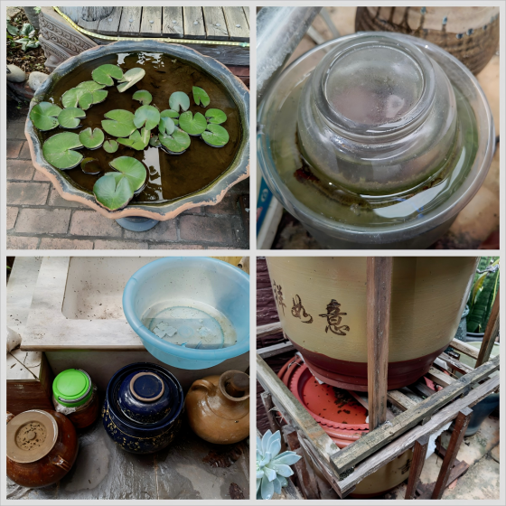 (三)天臺(tái)、陽臺(tái)及門前屋后積水管理。屋頂反墚、排水槽等應(yīng)定期疏通,避免堵塞積水。陽臺(tái)、天臺(tái)、庭院內(nèi)的花盆、泡沫箱、廢棄瓶罐等容器應(yīng)及時(shí)清理,閑置容器應(yīng)倒扣放置,儲(chǔ)水容器如水缸應(yīng)加蓋,廢棄容器徹底清除。竹筒、樹洞應(yīng)進(jìn)行封堵或改造,蓮花池養(yǎng)魚防蚊??照{(diào)冷凝水應(yīng)及時(shí)排凈,廢棄輪胎在底部打孔或避免露天放置。下水井進(jìn)行防蚊封堵,有條件的建議將明溝改為暗渠。